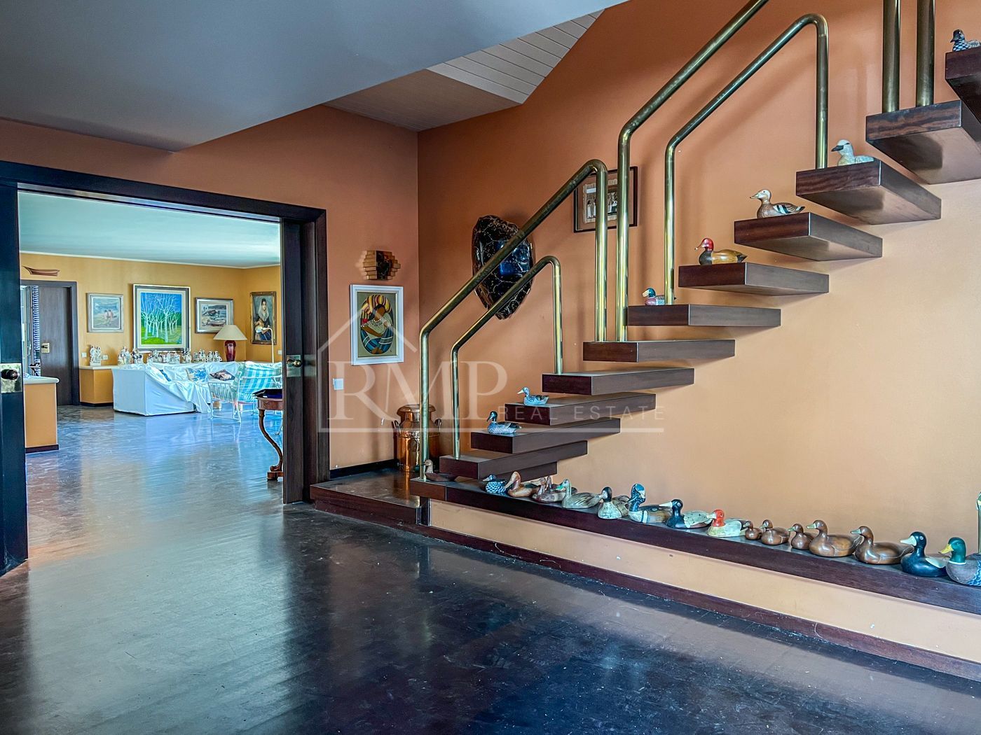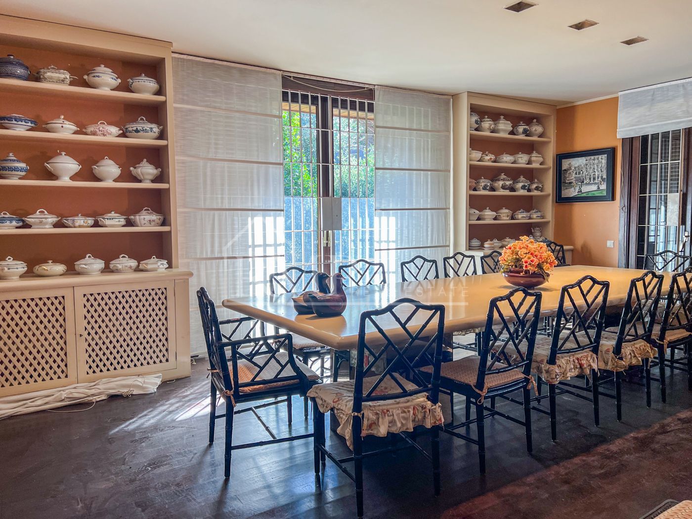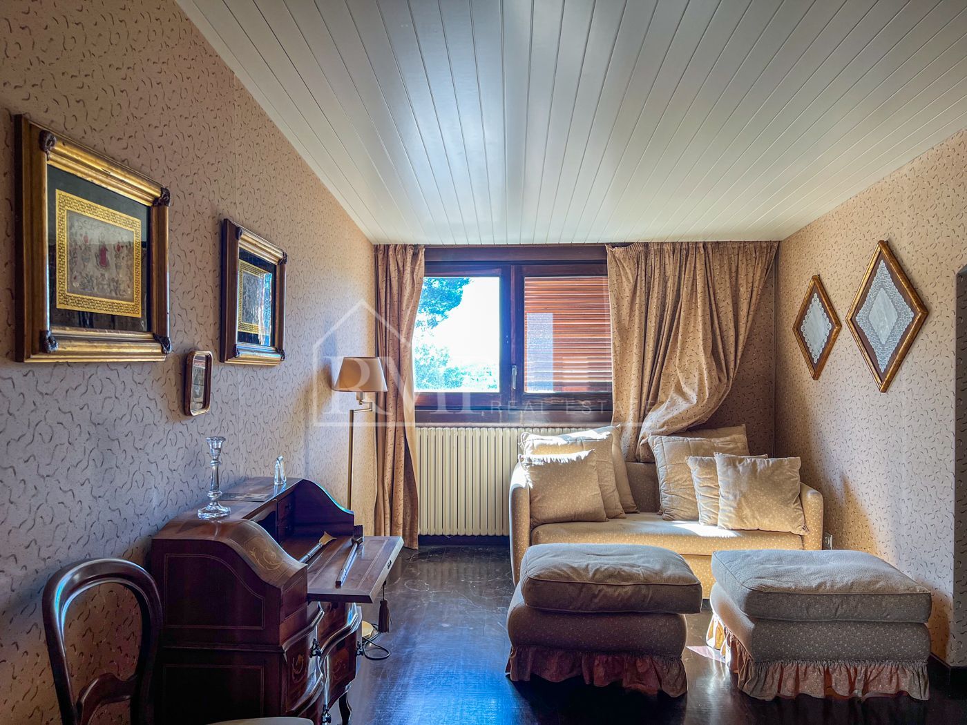 La entrada principal con su elegante puerta de madera da paso a un gran recibidor a dos alturas. El salón es una de las estancias más grandes y se convierte en la habitación ideal para reunir a toda la familia alrededor de la chimenea los días de invierno. Los grandes ventanales hacen que tenga luz solar durante todo el día. En el comedor impera una magnifica mesa con capacidad para 12 personas y destaca también por su luminosidad.