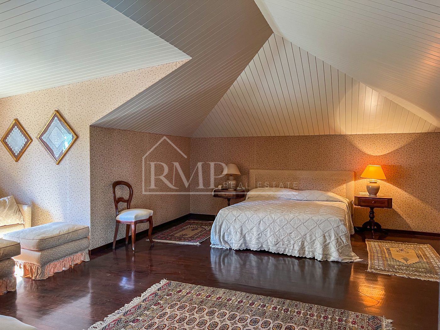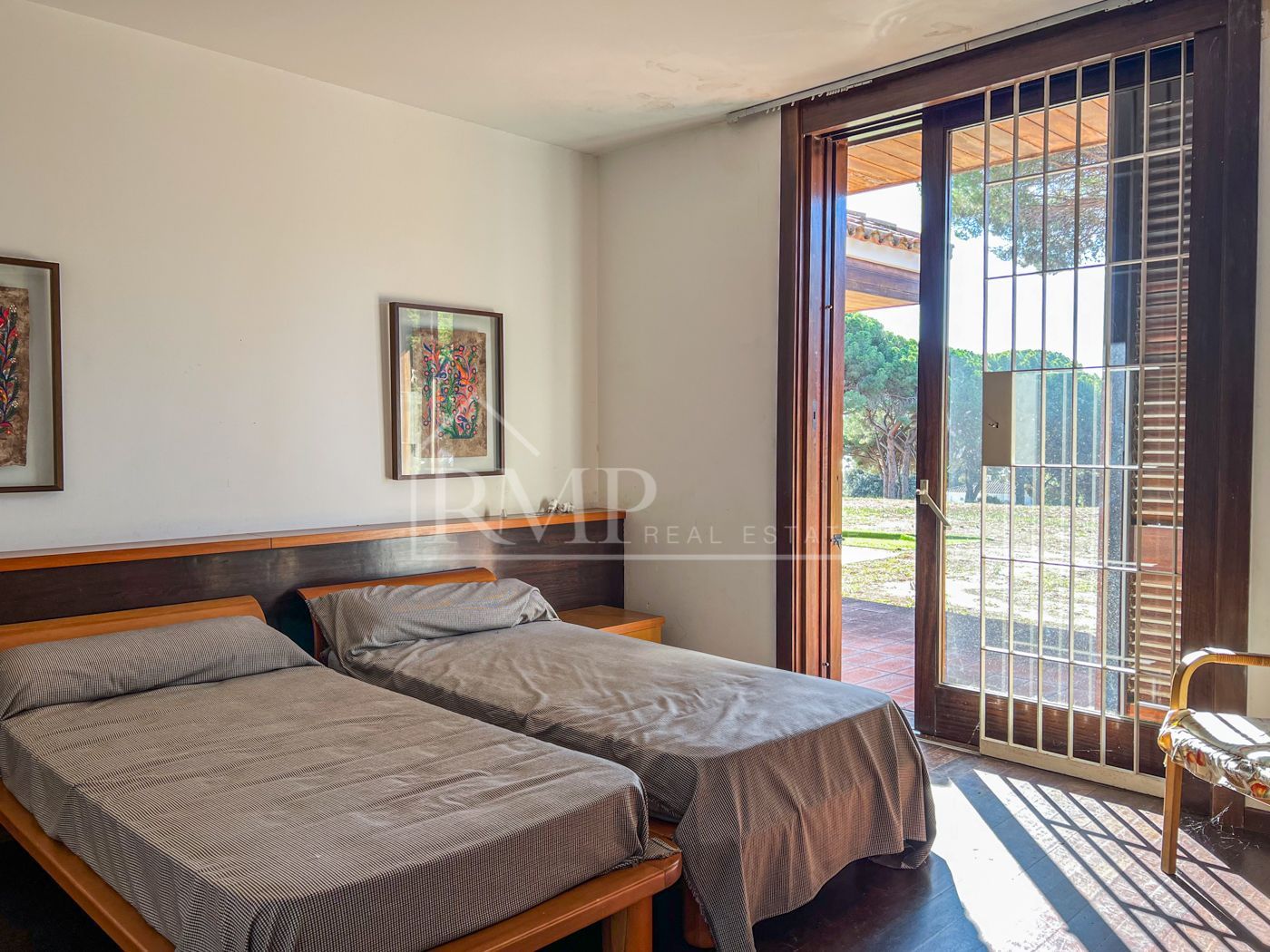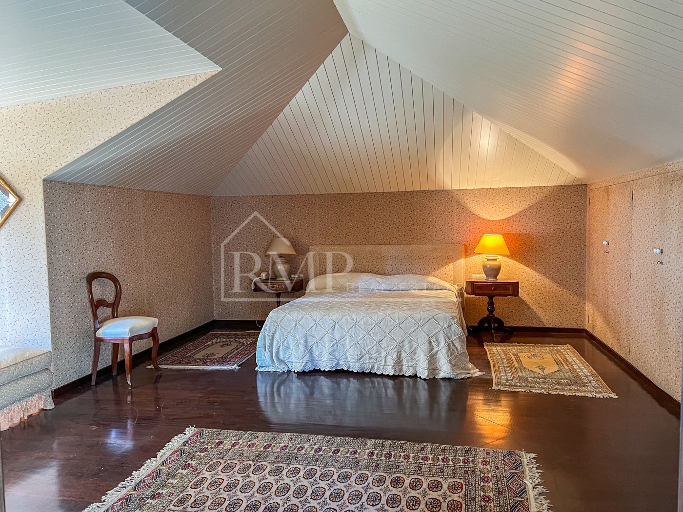 En el piso superior encontramos la zona de noche. Consta de seis habitaciones todas ellas tipo suite con baño propio doble y bañera. Una de las habitaciones suite tiene también anexo un dormitorio para niños. Todas las habitaciones son muy amplias y destacan por sus grandes ventanales que irradian luz natural durante todas las horas de sol y los magníficos suelos de madera.