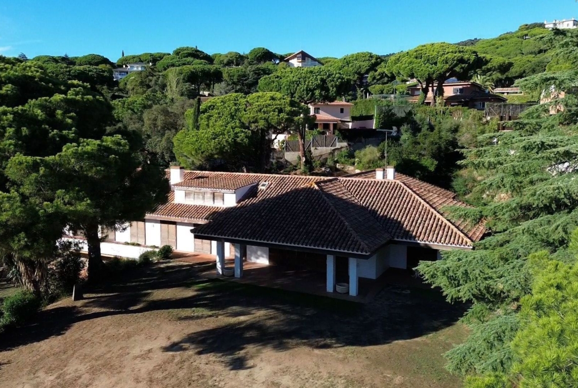 La casa cuenta con 800 metros cuadrados construidos en un terreno de 7.000 metros cuadrados. Uno de los lujos más destacables de esta vivienda es su exclusiva localización. La urbanización Rocaferrera es una de las más demandadas urbanizaciones de la zona. Se accede a la parcela a través de una calle tranquila, sin bullicio ni contaminación. Un encantador camino de piedra conduce desde la entrada de la calle hasta la zona de garaje.
