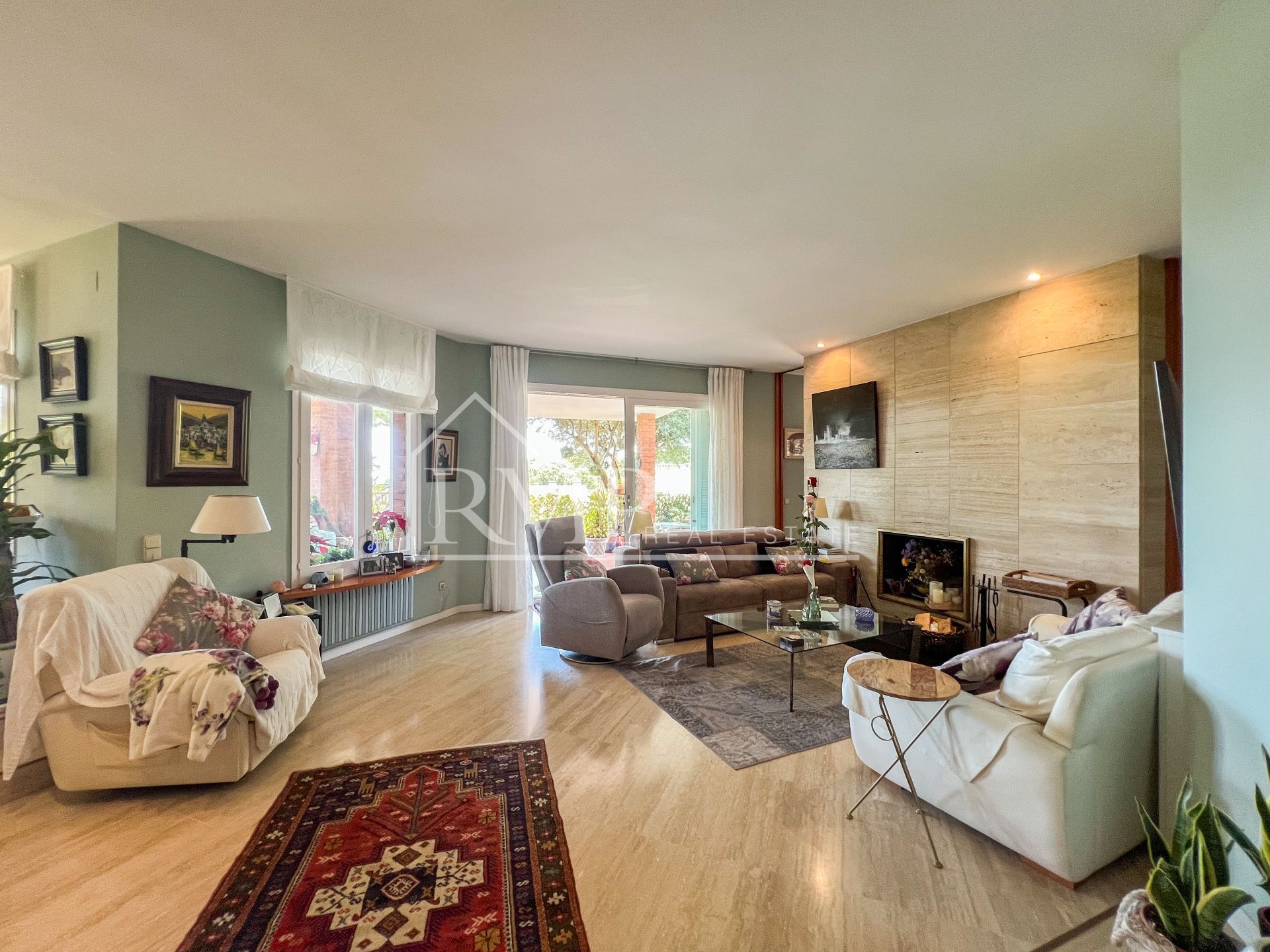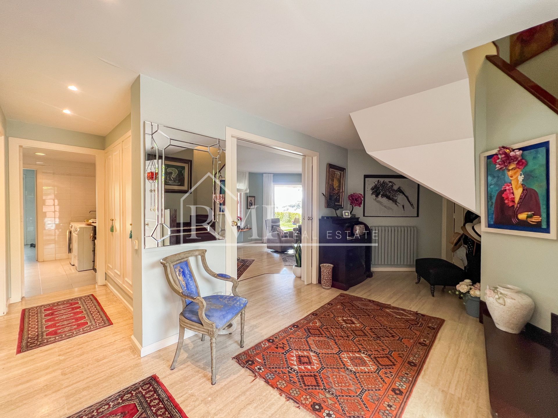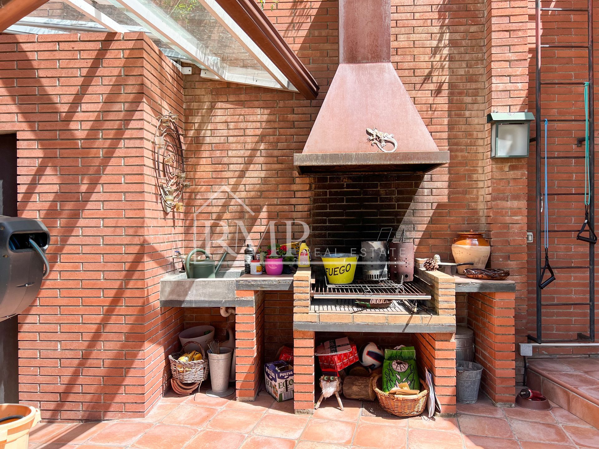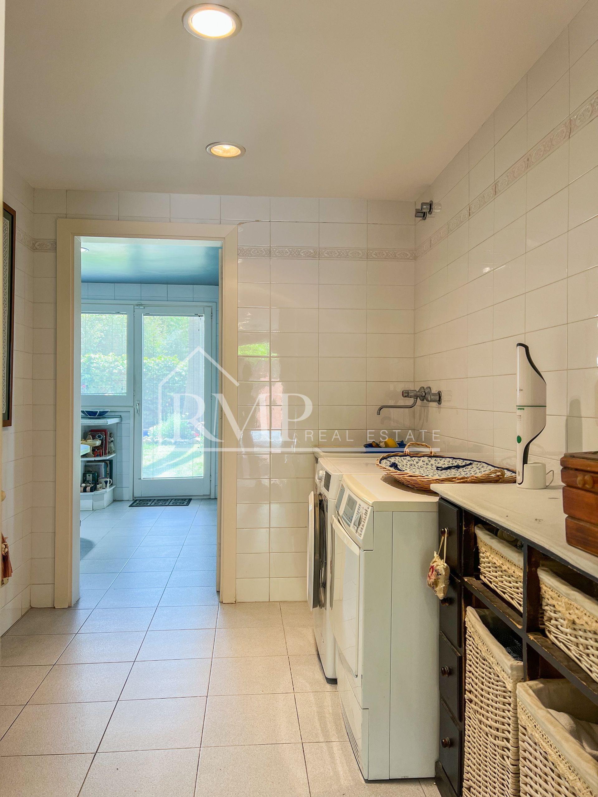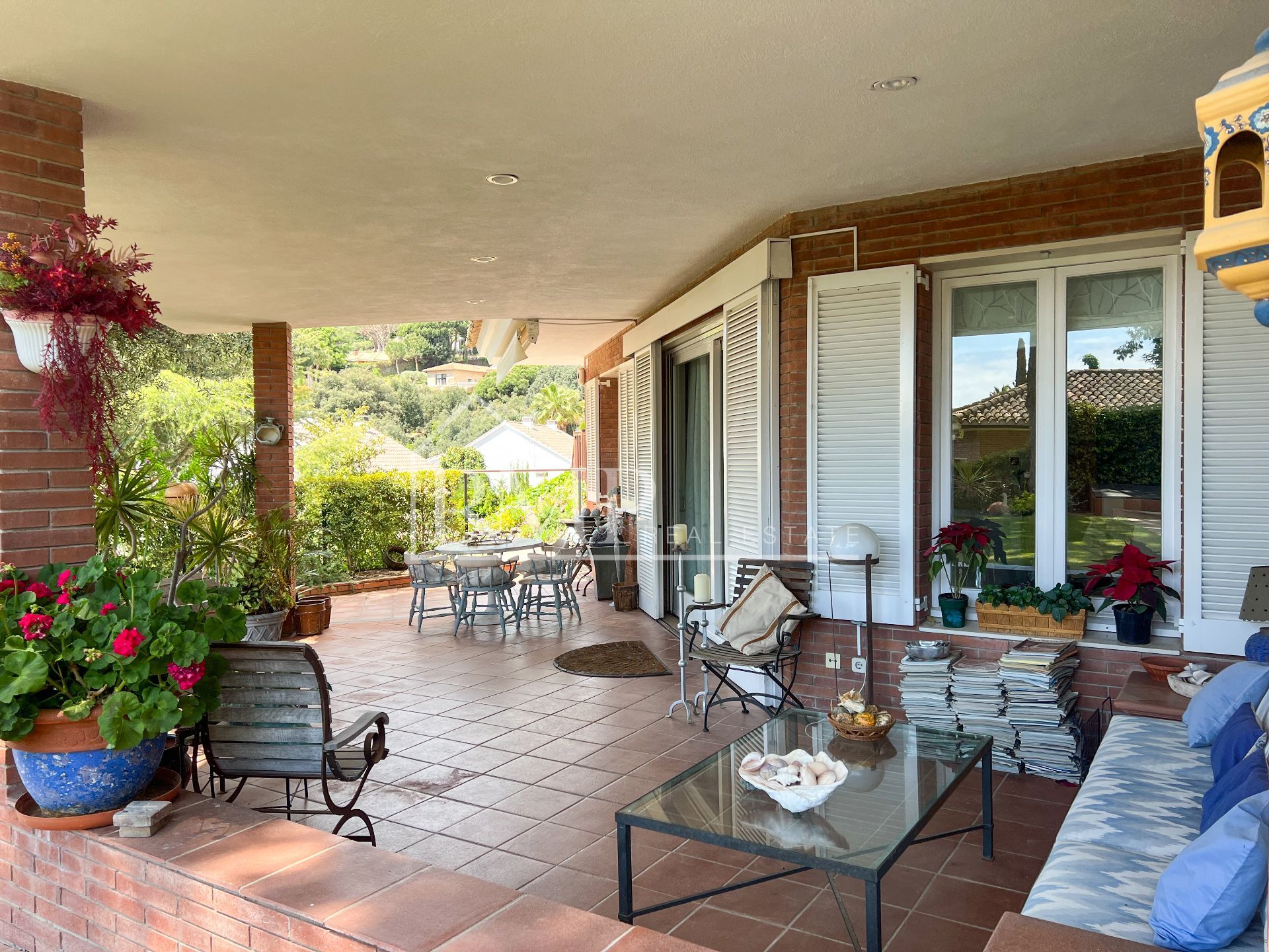 La vivienda se encuentra en una calle tranquila y con poco tráfico. Se accede a la casa a través de una bonita rampa de piedra. La parcela exterior está completamente ajardinada, con flores, arbustos y árboles autóctonos. En el centro del jardín destaca una magnífica piscina rodeada de césped natural, el lugar perfecto para colocar tumbonas y disfrutar del sol. También cuenta con varios porches de 60 m² que ofrecen zonas de comedor exterior y espacios de relax ideales para compartir con familia y amigos. El jardín, disfruta también de una zona de barbacoa.