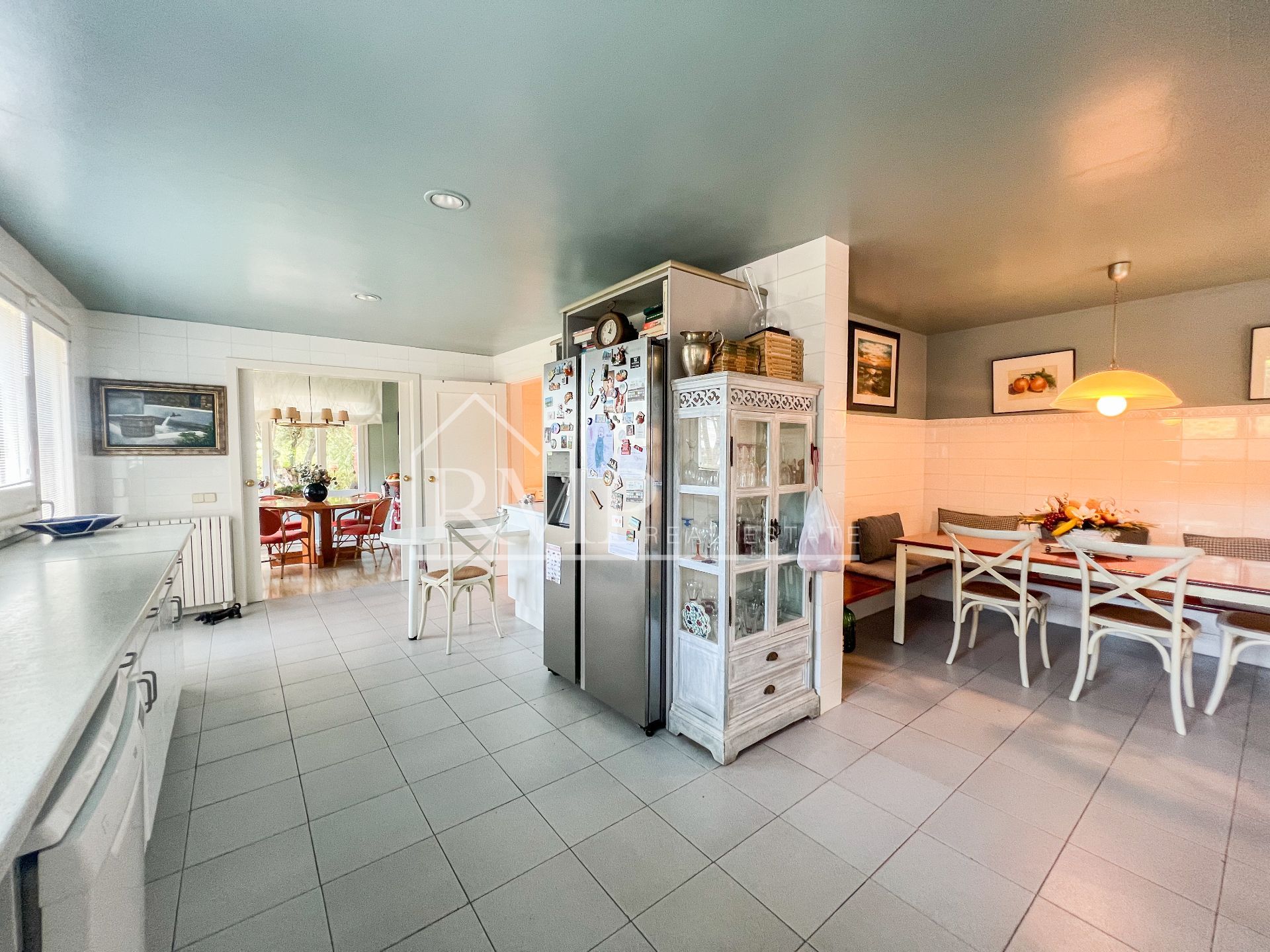 En la planta baja encontramos la zona de noche. El salón, con grandes ventanales, ofrece salida directa al jardín y permite aprovechar al máximo la luz natural durante todo el día. Actualmente se distribuye en una zona de estar con chimenea y un gran comedor. La cocina office destaca por su amplitud y luminosidad, cuenta con numerosos armarios que ofrecen gran capacidad de almacenaje, además de una mesa de comedor para el día a día y acceso al cuarto de lavado. En esta planta también encontramos un amplio despacho y un baño completo con ducha.