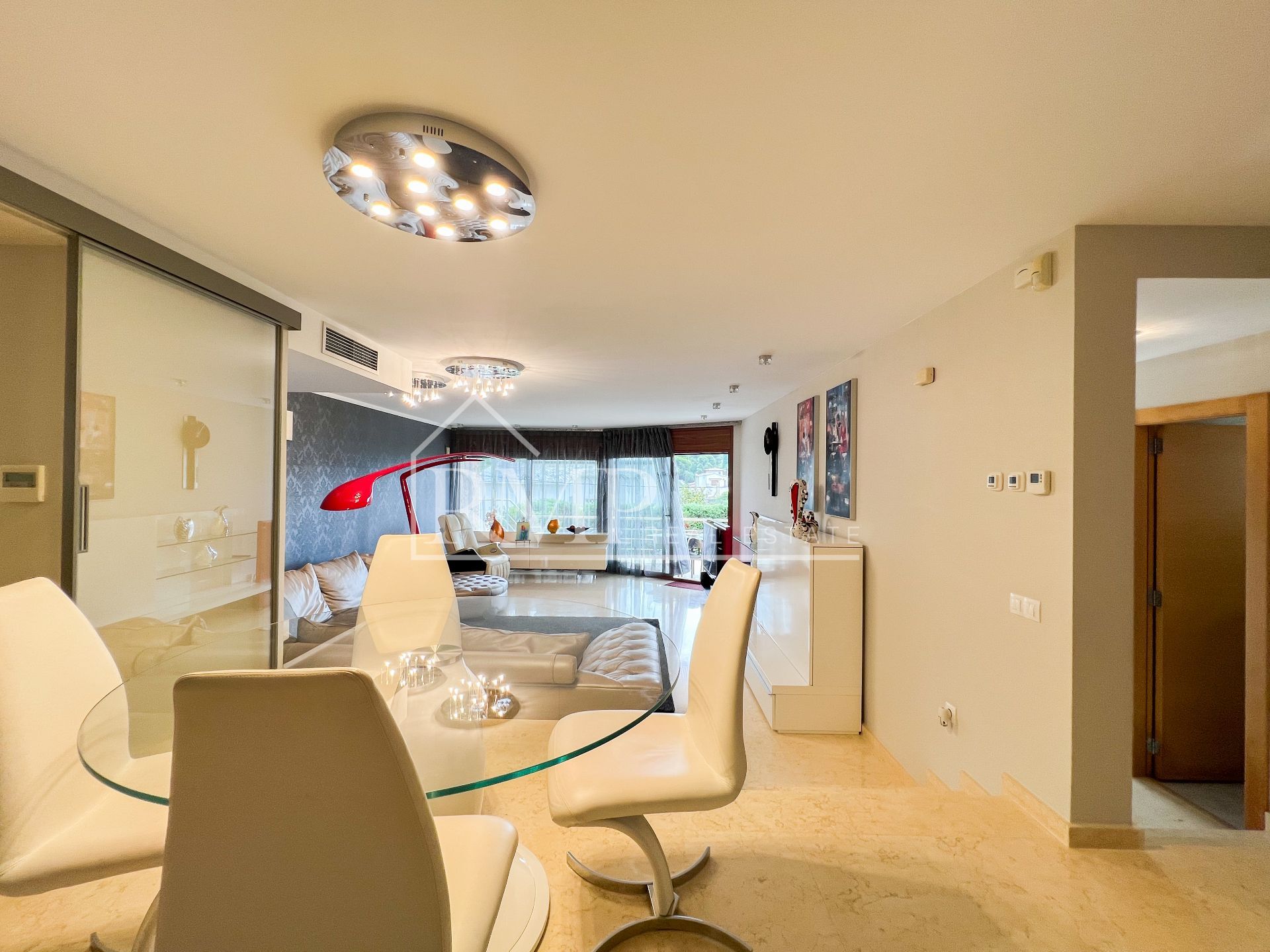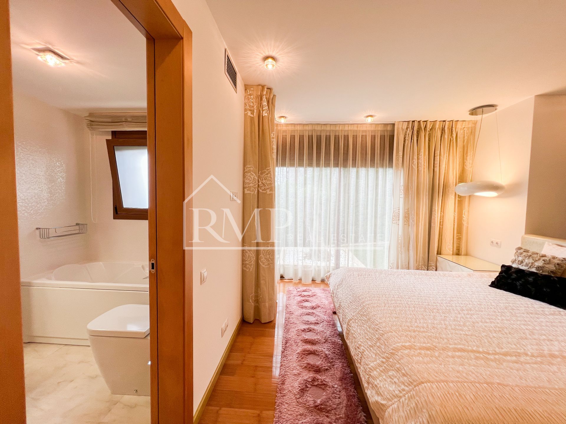 La zona de noche cuenta con 4 espaciosas habitaciones tipo suite, cada una con su propio baño privado y vistas al mar. La suite principal se destaca por su amplio vestidor, ofreciendo un toque de lujo adicional.