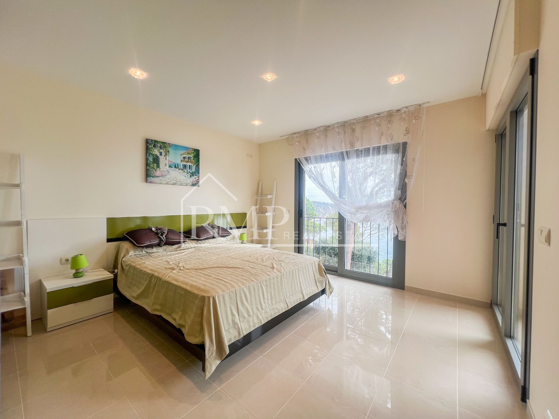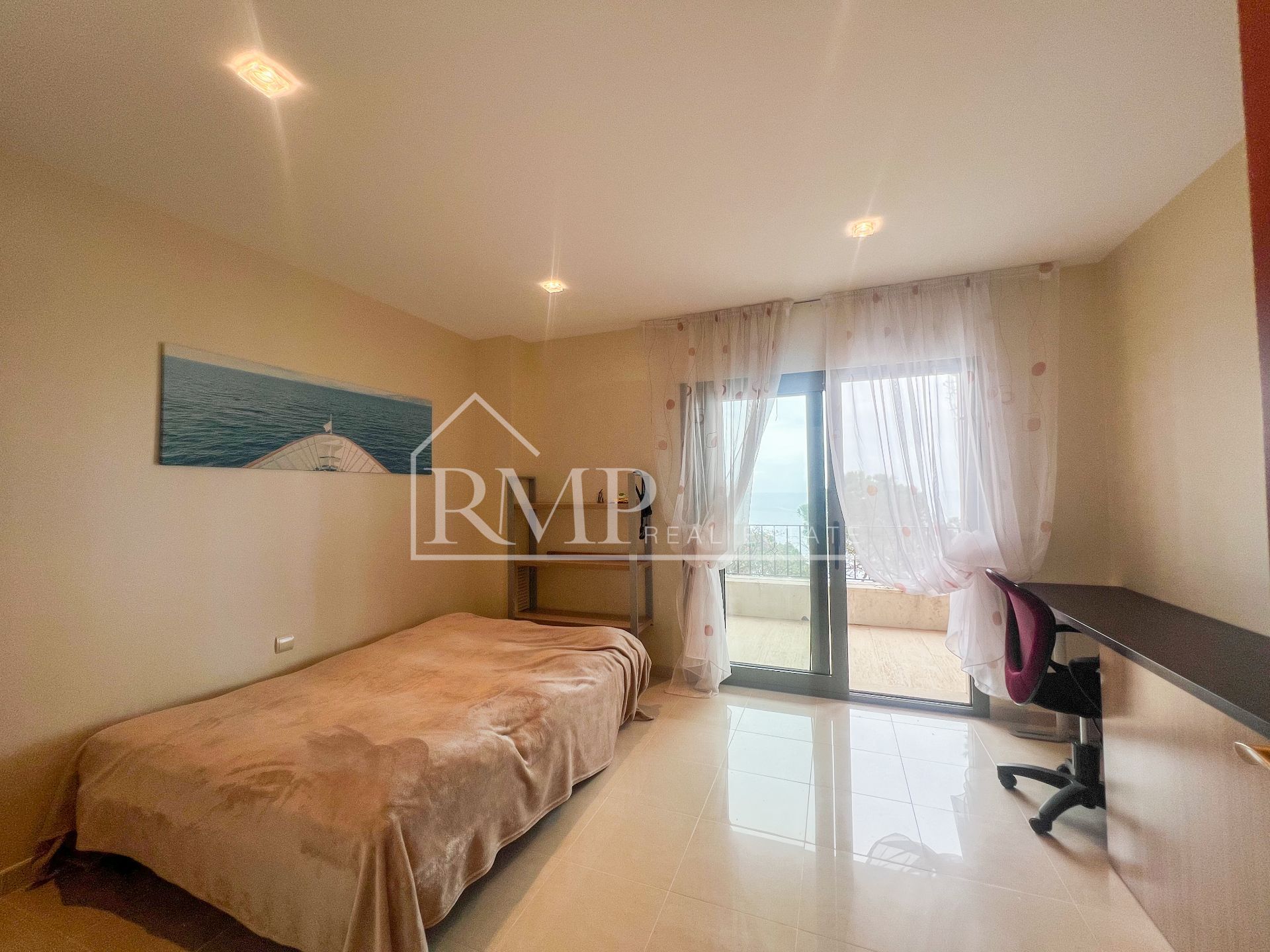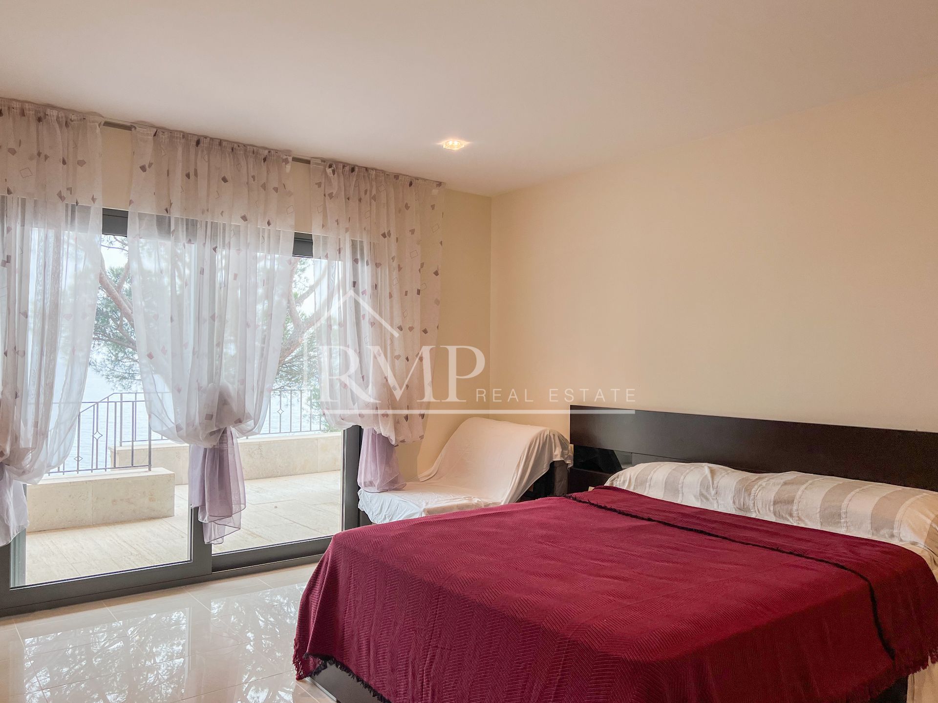 En la planta inferior, la zona de descanso alberga cuatro dormitorios, dos de ellos en suite con baño privado, mientras que las otras dos habitaciones comparten un baño completo. Todas las habitaciones cuentan con vistas al mar y salida a una gran terraza que rodea la propiedad.