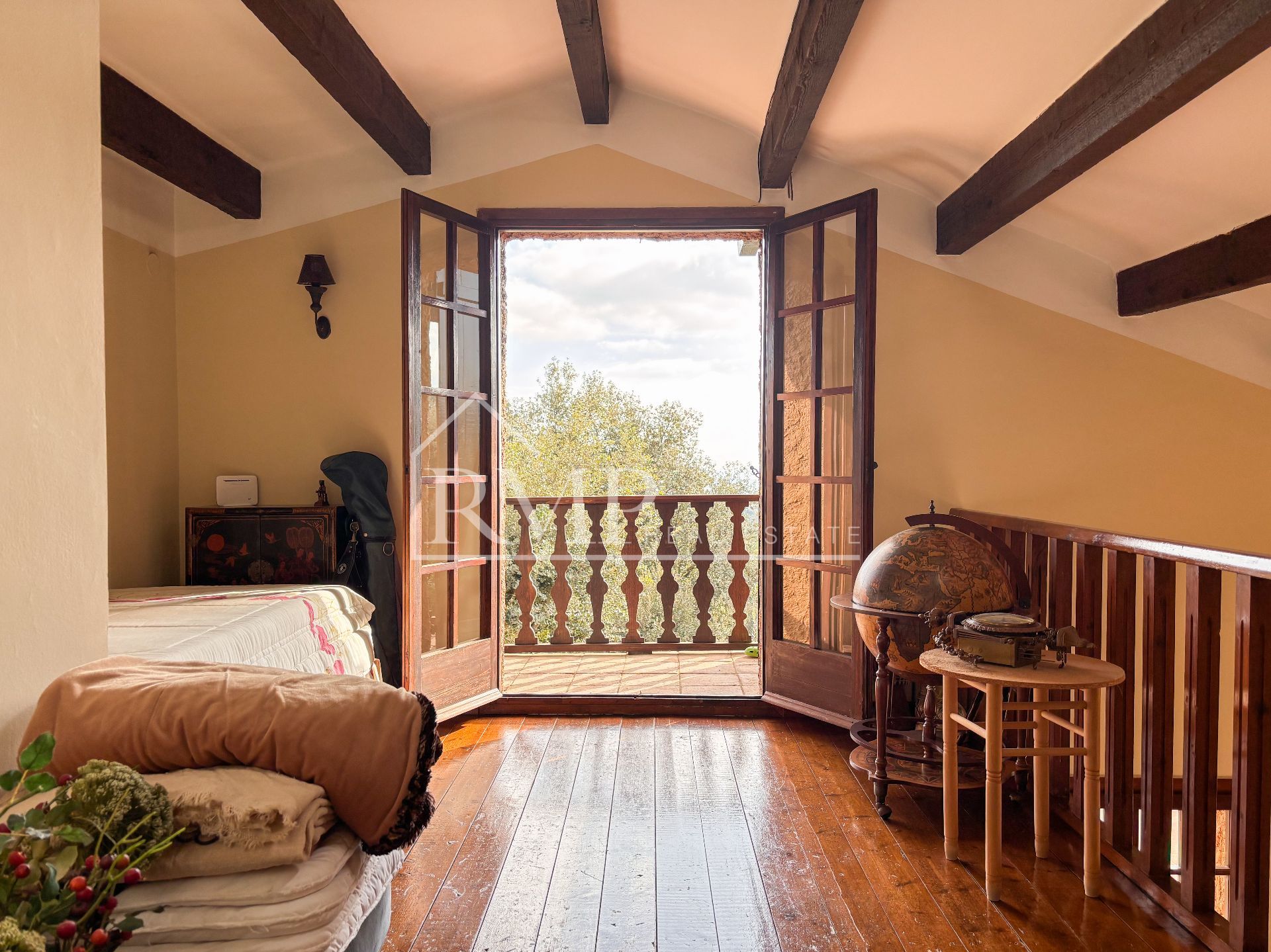 La vivienda cuenta con 285 m² construidos, de estilo rústico auténtico, con techos altos y vigas de madera que aportan calidez y personalidad. Actualmente dispone de 3 habitaciones y 2 baños, con posibilidad de redistribuir o ampliar para crear más dormitorios según necesidades. Además, la normativa permite construir hasta 90 m² adicionales, abriendo la puerta a un proyecto a medida.