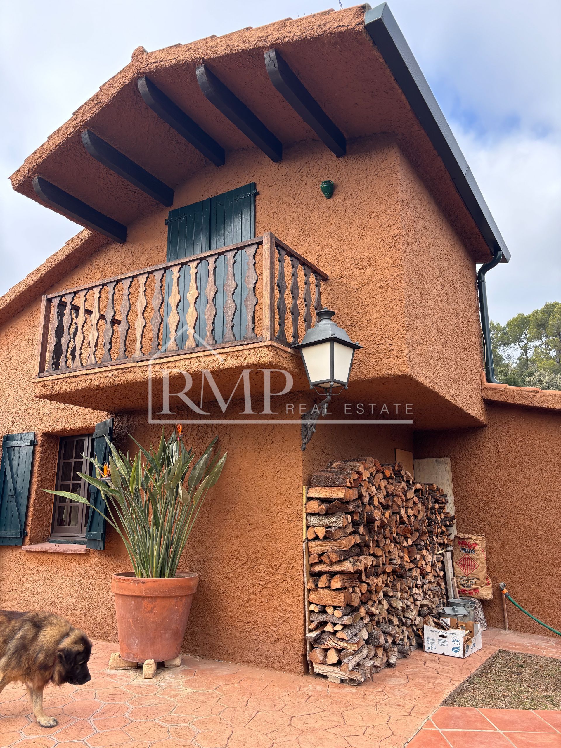 Situada sobre una parcela de 12.000 m² prácticamente llana, con una ligera elevación que regala vistas abiertas a la montaña, esta propiedad combina la sensación de estar en pleno bosque con la comodidad de tener el pueblo a pocos minutos. Intimidad real. Silencio del bueno. Y un río que marca el límite natural de la finca, porque sí, esto existe.