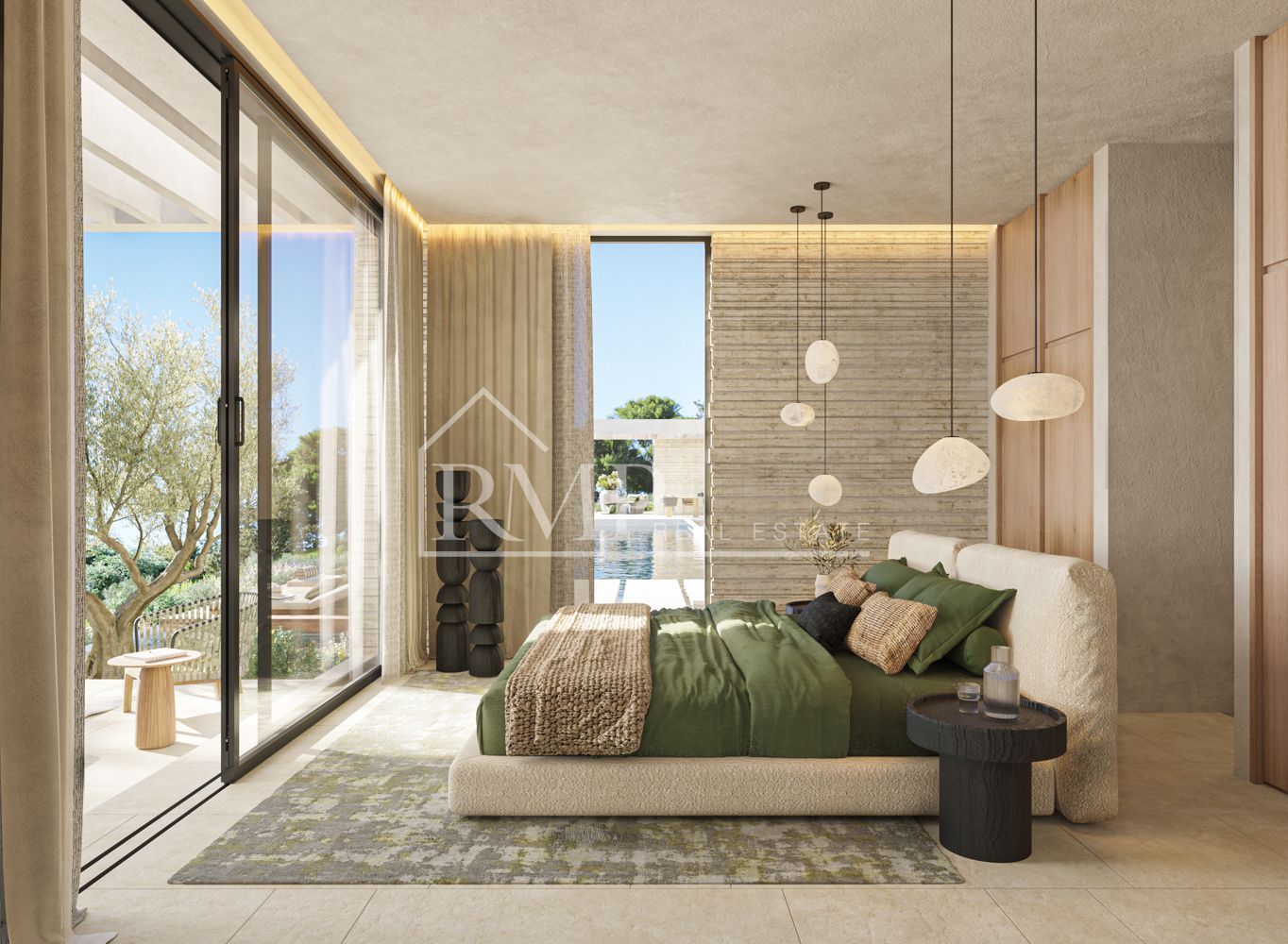 Con vistas panorámicas al horizonte marino, la casa se baña en la luz del amanecer y el suave resplandor del atardecer, impregnando el espacio con una sensación de paz y equilibrio. Esta lujosa vivienda, situada al pie de la montaña y orientada hacia el mar, redefine el concepto de hogar moderno.
